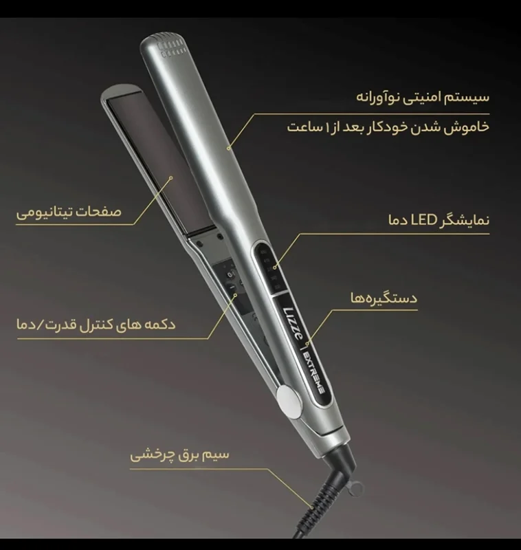دارای سیم چرخشی 360 درجه ضد گره و طول 2 متر مناسب سالن صافی 100% با ماندگاری بالای یک سال برای کراتین دارا ی دمای 150 – 250 و480 – 300 فارنهاینت دارای صفحات تیتانیوم با لایه تورملین دارای دکمه ی خاموش و روشن ویژگی های منحصر به فرد مناسب انواع مو دارای نمایشگر دیجیتال دارای قابلیت تنظیم دما