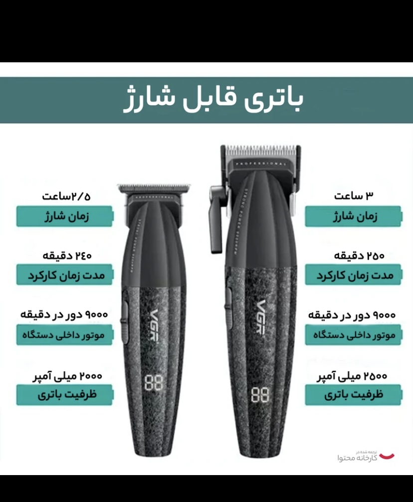 1 ، 2 و 3 میلیمتر برای ماشین اصلاح موی صورت/1.5 ، 3، 4.5 ، 6 ، 9 و 12 میلیمتر برای ماشین اصلاح موی سر