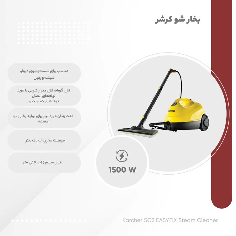 بخارشوی خانگی مدل SC 2 Easy Fix ، از محصولات سری SC کمپانی Kärcher آلمان است. محصولات سری SC جز محصولات خانگی این کمپانی آلمانی می باشد. همچنین در این محصول از سیستم Easy Fix استفاده شده است