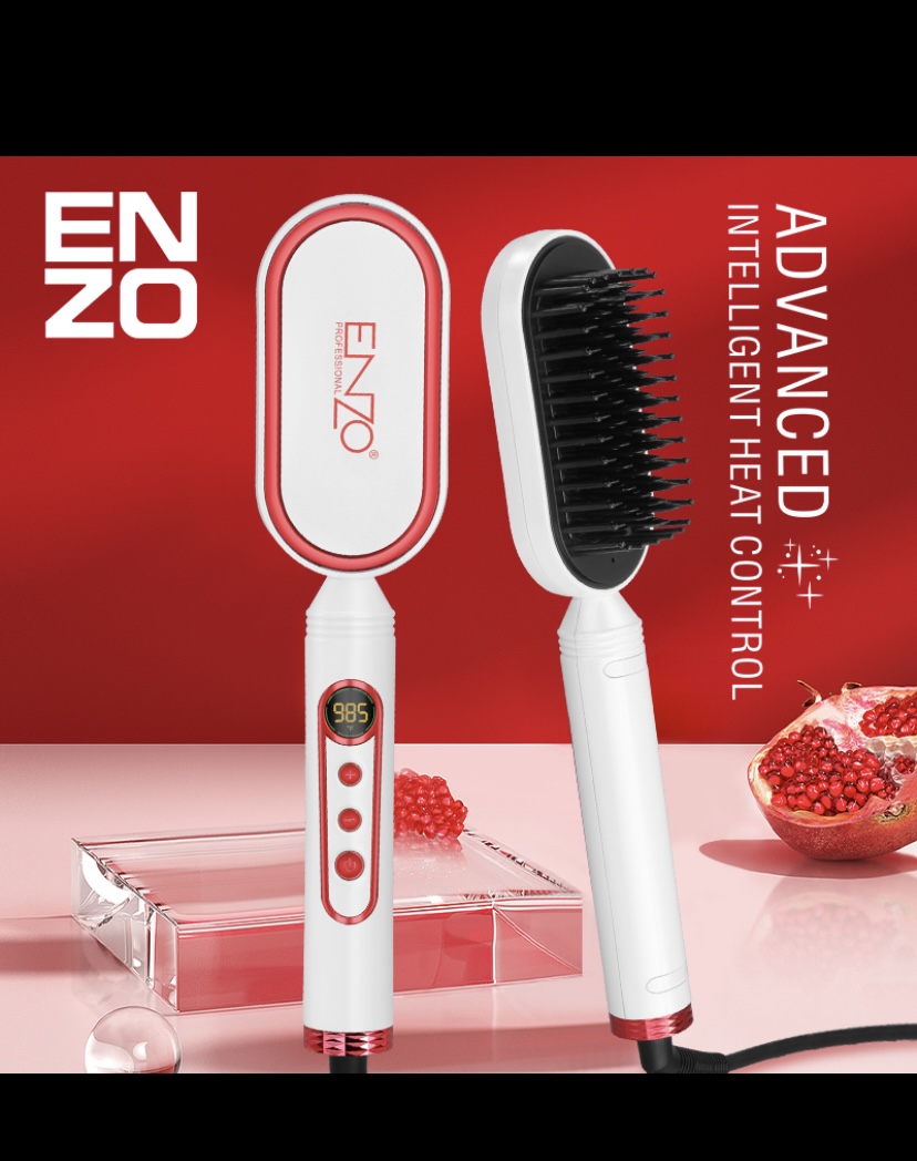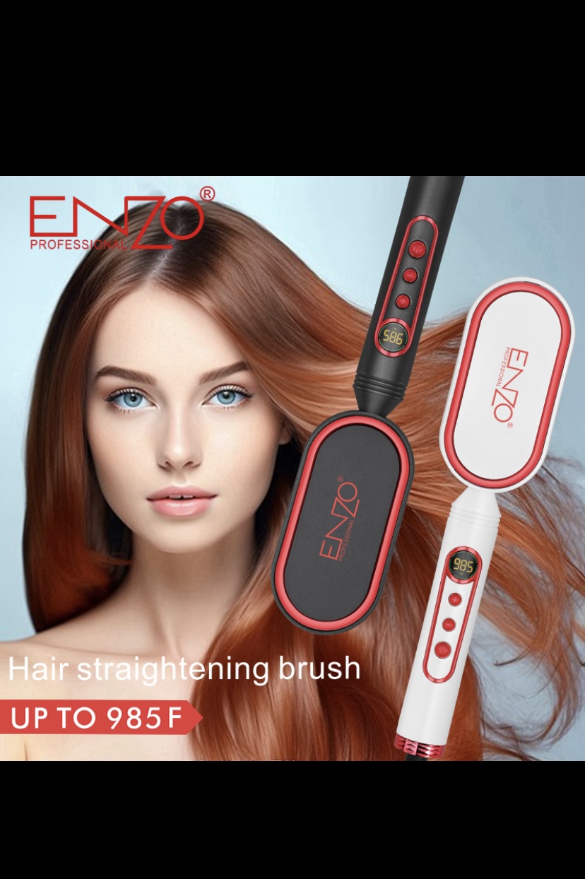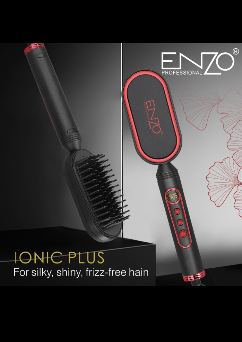 این تصویر یک برس حرارتی حرفهای ENZO را نشان میدهد که برای صاف کردن و حالت دادن به موها طراحی شده است.
