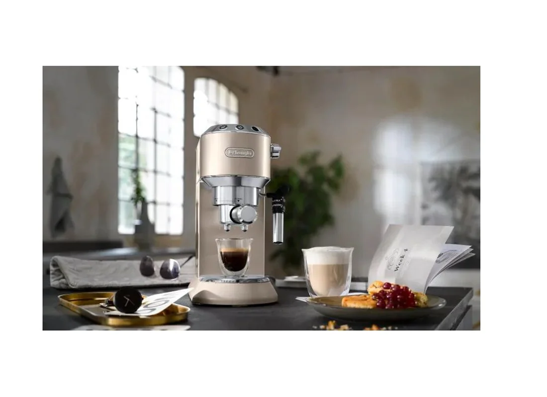 اسپرسوساز EC785 می تواند به عنوان یک دستگاه تخصصی در زمینه تولید قهوه اسپرسو عمل کند و تقریبا تمامی کارایی که کاربر نیاز دارد را به آسانی فراهم می کند.قدرت بخار اسپرسوساز دلونگی EC785 برابر است با ۱۵ بار که این موضوع باعث می شود تا یک قهوه با کیفیت و خامه ی غلیظ خوب داشته باشید.این یکی از ویژگی های خیلی خوب این محصول می باشد که در تمامی دستگاه های اسپرسوساز این مهم می باشد. شما می توانید به راحتی با دلونگی EC785 کاپوچینو درست کنید و این مقدار رو بستگی به نیازتون تنظیم کنید. برای تهیه کاپوچینو نیاز هست که از طریق نازل بخار و پیچر مخصوصی که داخل پک وجود داره به همراه شیر پرچرب یک فوم خوب بگیرید و روی قهوه اسپرسو اضافه کنید و از نوشیدن آن لذت ببرید.سیستم ترموبلاک یک تکنولوژی حرفه ای برای تنظیم دمای آب مخصوص برای قهوه اسپرسو می باشد که دستگاه را به حالت آماده باش برای تهیه اسپرسو نگه می دارد و EC785 می تواند به کمک این تکنولوژی بهترین اسپرسو را به شما تقدیم کند.